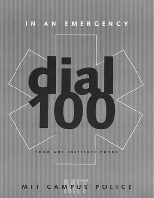Campus Police recently had new posters made to remind people to dial 100 from any Institute telephone for campus emergencies. This number connects directly to the Campus Police department, which can help with safety, fire and medical-transport needs. To reach Campus Police from an off-campus phone, dial 253-1212.