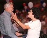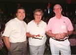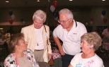 The Quarter Century Club held its summer picnic at the Johnson Athletics Center Ice Rink on August 15. Joseph Bielinski and Sandra Blasi (below) use a little body language for emphasis in their conversation. At right, top, Anita Richard, Beverly Canfield-Woods, Jack Woods and Jeannell Levasseur greet one another. At right, bottom, are Tony Ruggelo, Mary Scanlon and Dick Scanlon, of Lincoln Labs.