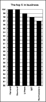 The Sloan School of Management placed a close fourth among business schools, with a rating of 98 compared to 100 for Harvard and Stanford, and 99 for the University of Pennsylvania.