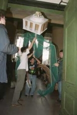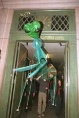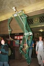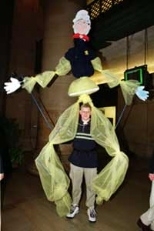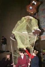 Several towering figures, including a praying mantis, the MIT beaver, Popeye the sailor, a Dome hack and a skeleton, bobbed around the Infinite Corridor last week. Associate Professor Dava Newman of aeronautics and astronautics had teams of students in 16.00 (Introduction to Aerospace and Design) design and build 15-to-20-foot lightweight articulated figures that could be "worn" by one person, make it through the Infinite Corridor between Lobby 10 and Lobby 7, and encourage MIT spirit.