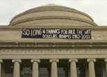 Also on Thursday, a banner mounted on the Great Dome paid tribute to the late author Douglas Adams. The message was a takeoff on the title of his book So Long and Thanks for All the Fish (the hack had the last word changed to "wit"), part of Mr. Adams' popular Hitchhiker's Guide to the Galaxy series. Mr. Adams died of a heart attack on May 11 at age 49.