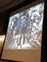 Graduate student Phil Ferguson asked Lu about his "flying" technique on the ISS (walking is impossible, of course). Lu replied that Newtonian mechanics are obvious in zero gravity; a body in motion will remain in motion until force is applied, and a body at rest will remain there.