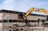 Demolition of Building 45 on Vassar Street got under way on April 30 and was completed two days later. The one-story, 13,616-square-foot building, which opened in 1979, was torn down to make way for the brain and cognitive sciences project. The butterflies that decorated the exterior have moved to the adjacent building.