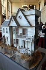 Built by Ronald L. Dion, former set designer for the Turtle Lane Theater in Newton, the 34 by 30-inch dollhouse comes with its own history provided by Dion, who generously donated the house to the Women's League. The story goes: