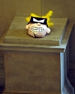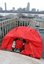 This structure appeared on the Lobby 10 dome Tuesday morning, ostensibly piloted by Spaceman Spiff, alter ego of Calvin in the "Calvin and Hobbes" comic strip. The head of the "pilot" apparently crashed through the dome and landed on a pedestal in Lobby 10. "I'm really sorry about crashing my space ship into the Small Dome," a note from the hackers read. "The Zorg ambush known as the first day of classes was on me."