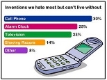 With its score of 30 percent, the cell phone narrowly beat the alarm clock (25 percent) and television (23 percent) for the distinction in the survey, which gauges Americans' attitudes toward invention. Razors, microwaves, coffee pots, computers and vacuum cleaners were also cited as essential yet despised inventions.
