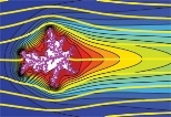 The result is this remarkable fractal image created when Martin Z. Bazant, associate professor of applied mathematics, and his group applied a new mathematical twist to a model called diffusion-limited aggregation (DLA). As the conglomerate of particles grows, the effect of the flow becomes more pronounced. The tips on the front side facing the particle-laden flow (blue) get more action than the tips at the back. At the back, you can see the effect of the flow as the region depleted of particles (red) is swept downstream.