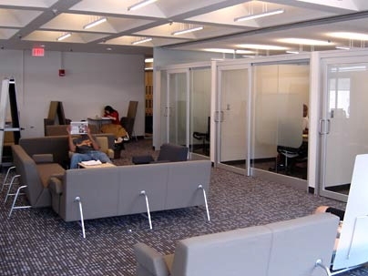 The theme of the student center renovation is collaboration, Walsh said. The transformed space now offers seven group study spaces of varying sizes, equipped with LCD panels and electronic white boards, to accommodate groups from four to 10 students.