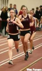 Bradshaw set a school record while achieving an NCAA Provisional cut time in the 800 meters, finishing in 2:15.18. Wentz's mile time was just a second and a half off her Institute record pace set last week. She followed that performance by setting a personal record in a victory at 1,000 meters with a time of 2:59.18. In the 55-meter hurdles, junior Amy Magnuson (8.44) and freshman Portia Jones (8.49) went one-two, as both hit NCAA Provisional marks. The 4x400 meter relay team gave Tech its final event win of the day, knocking off the second-place team from Tufts with a time of 4:02.73.
