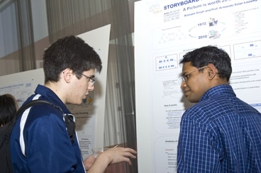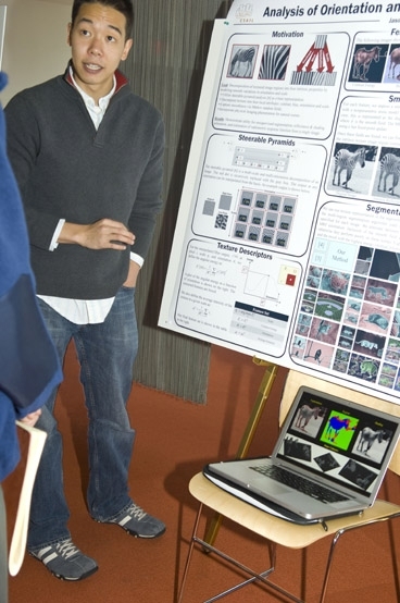 Masterworks was opened to EECS Master of Science students several years ago. This year, following a two-year precedent featuring presentations in the Stata Center R&D area, 26 entrants engaged in lively discussions and multiple impromptu explanations of poster material. Ample ice cream servings with choice of multiple toppings fueled presenters and engaged viewers.