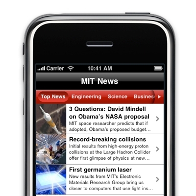 Yu: As project manager, I worked closely with News Office staff and with Justin Anderson, the project’s lead developer in IS&T. Other IS&T staff helped with server deployment. Two contractors with MIT connections, Sonia Huang and Brian Patt, were also involved and have been aligned with MIT Mobile Web project since 2007. Sonia is a still a graduate student at MIT, and Brian is an alum who graduated with a PhD in physics from MIT three years ago.