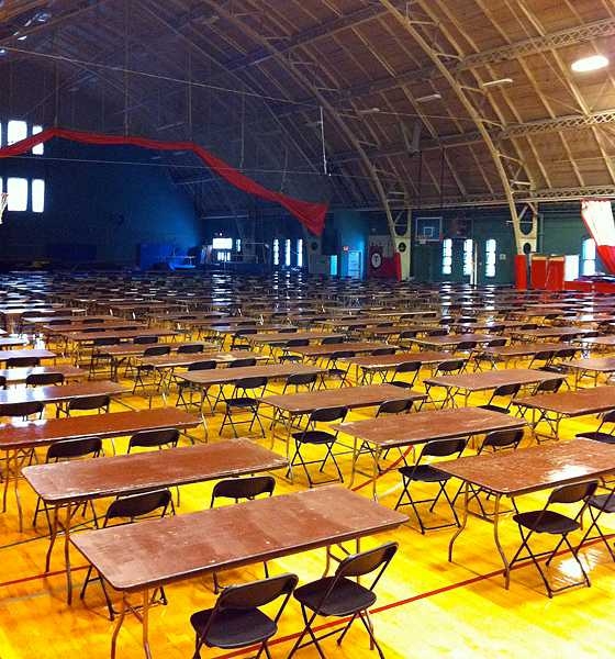 It's a timeless scene for MIT as empty tables in duPont Gym await students for final exams, which begin today, Monday, Dec. 13.