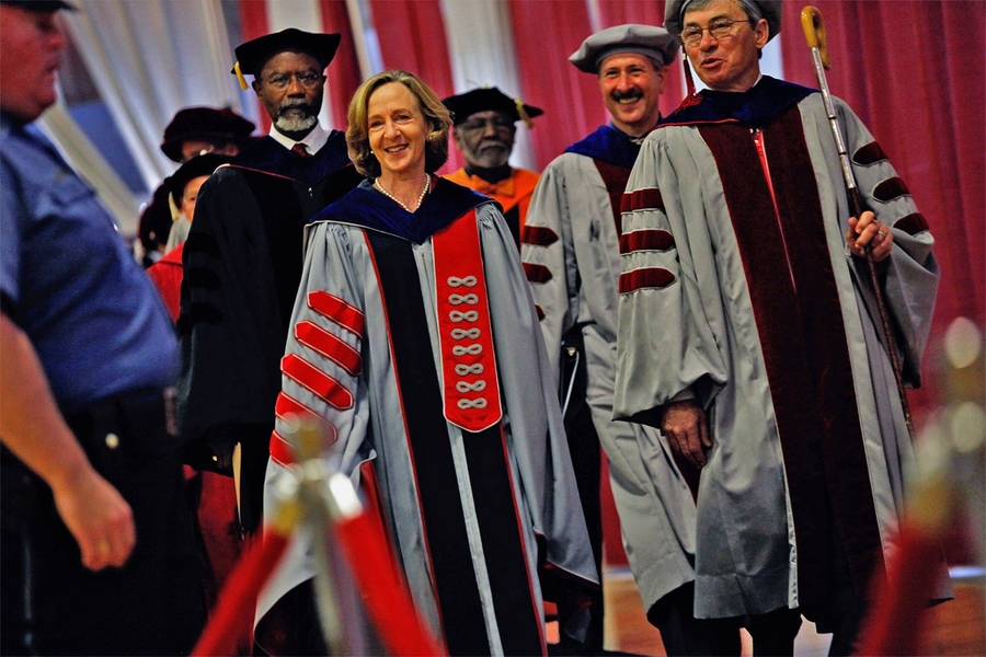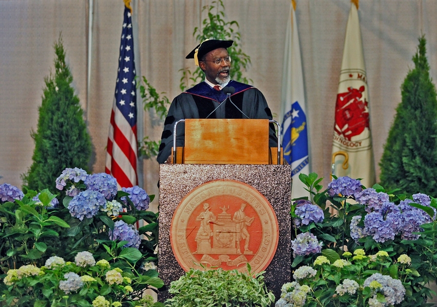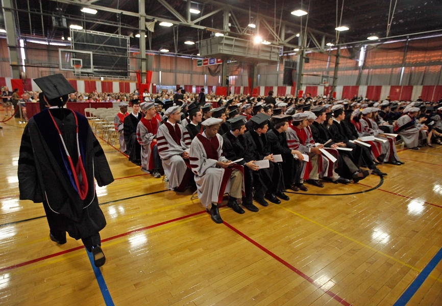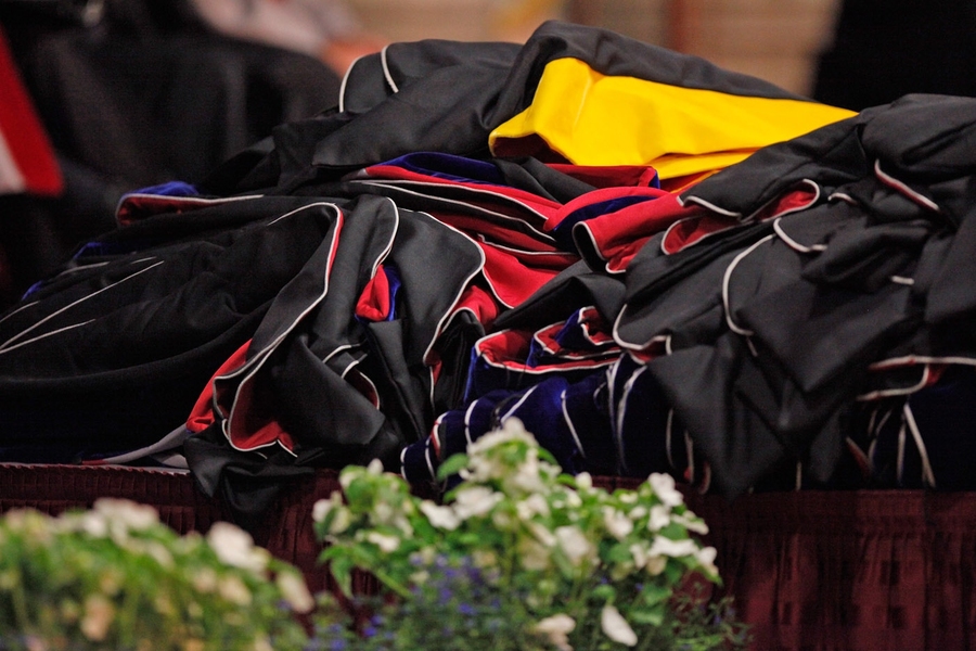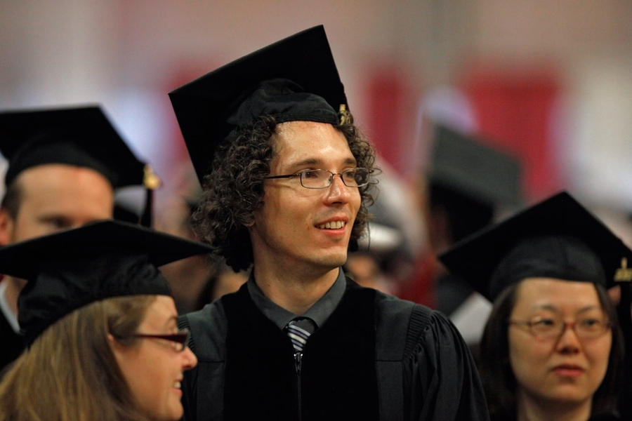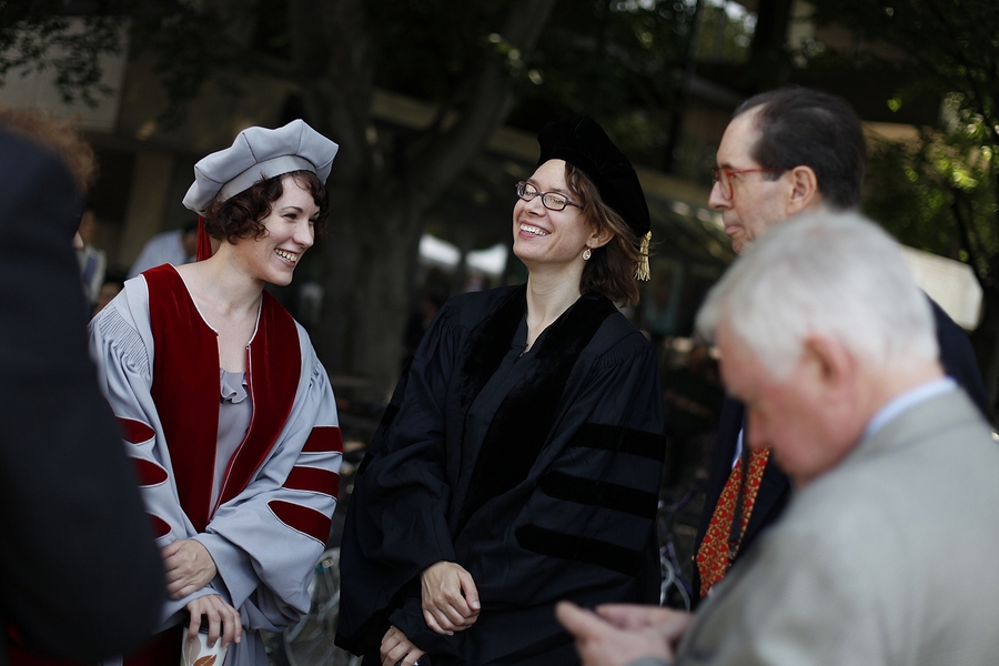 At MIT, advanced degree candidates receive their doctoral hoods in a separate ceremony held the day before Commencement.