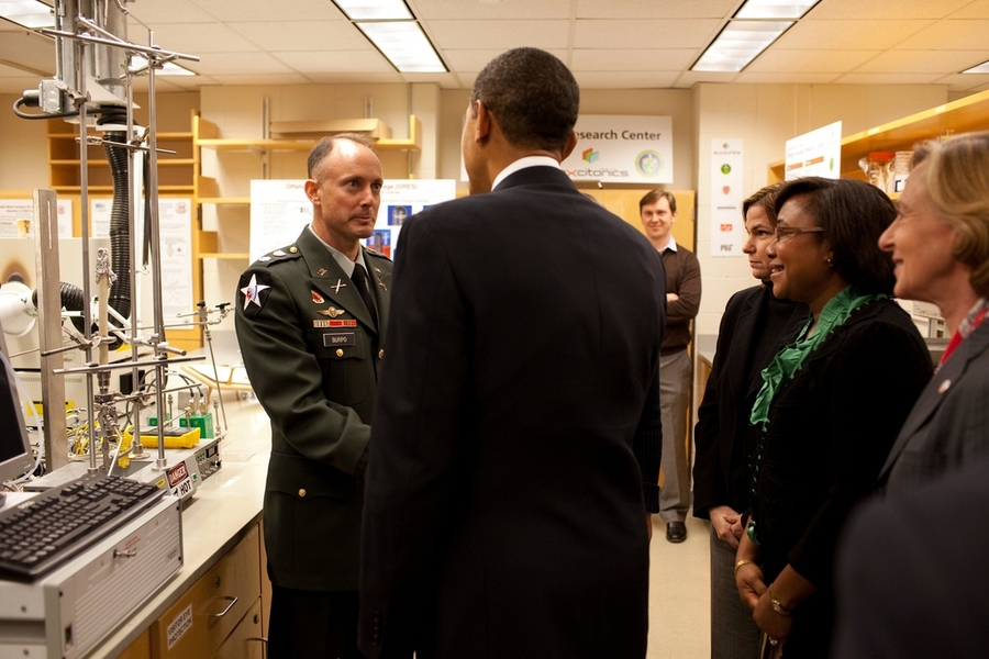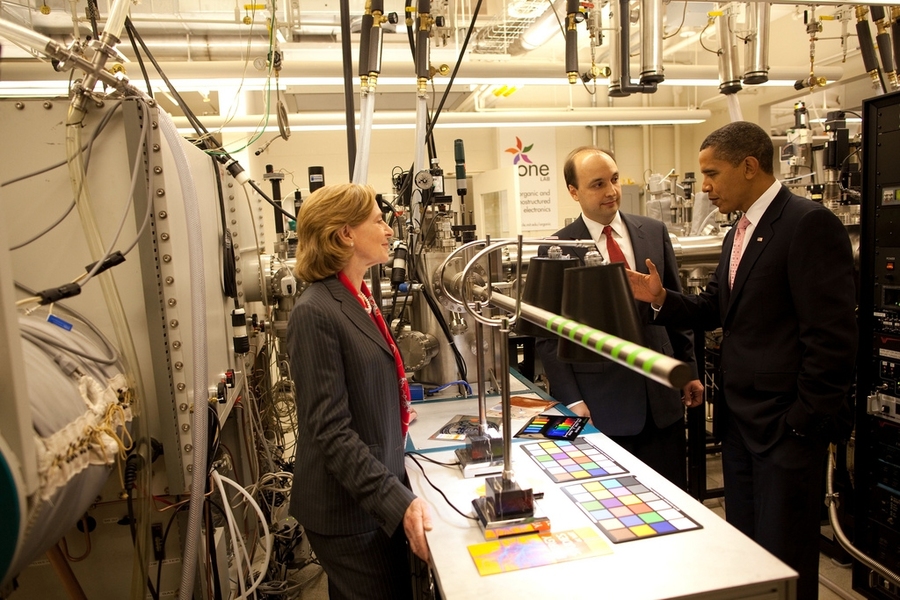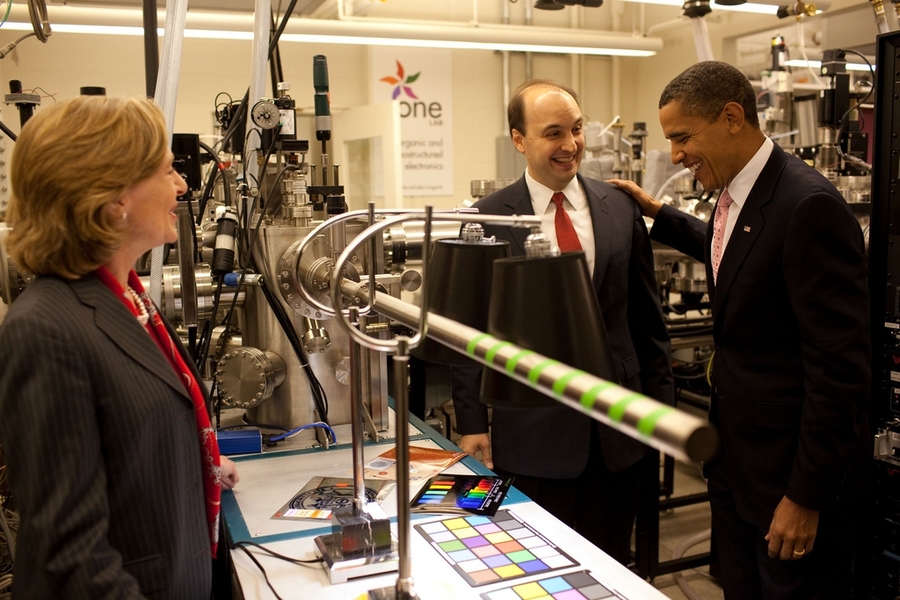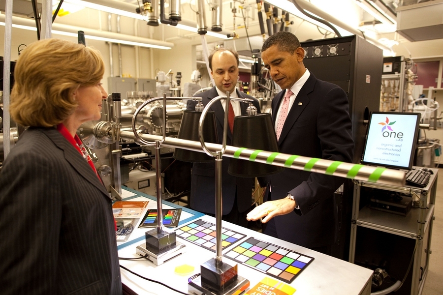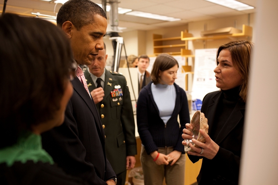 On Oct. 23, 2009, MIT proudly hosted a visit by President Barack Obama, which caused great excitement on campus and in the MIT community around the world. These previously unreleased photos show the lab tour that the president took, where he met with several Institute researchers.