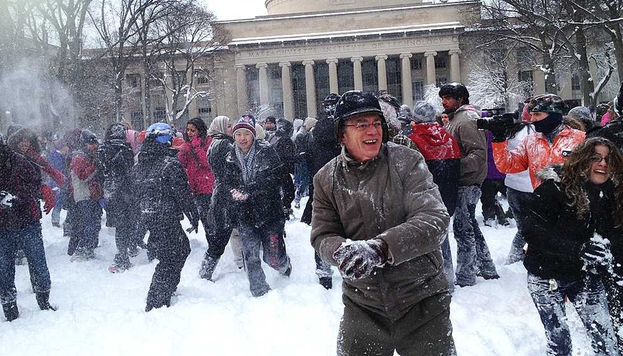 An historic snow storm rolled through New England on Feb. 8 and 9, closing down much of the region — including MIT. Community members used the opportunity for some midwinter entertainment, and a student-organized snowball fight on Killian Court drew many participants, including MIT President L. Rafael Reif and his wife, Christine.