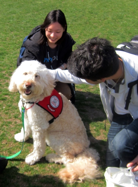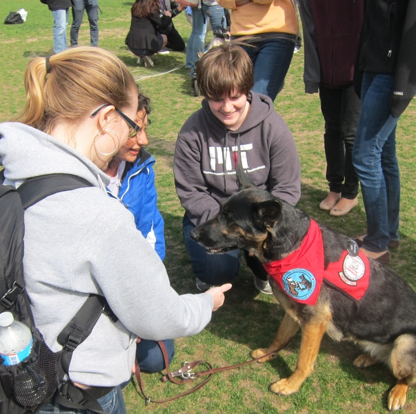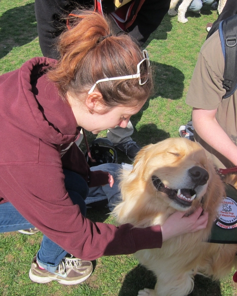 According to Ed Pratt, the handler for Savannah and Sidney, dogs can sense distress in people and respond sympathetically. For students who were shocked by three days of violence so close to home, the sympathy was welcome. “The dogs were a great distraction from everything that’s happened,” said Dacie Manion, a mechanical engineering sophomore. “We need help to move on, and these dogs gave us a way to start doing that today.”