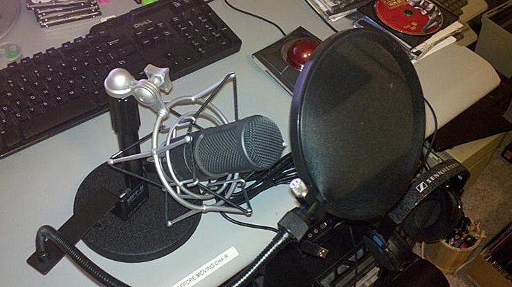 If you want to take recording to the next level, the basic hardware is affordable. You might want an external mic with a shock mount so that if you accidentally bump it, it doesn't pick up the vibrations from the table. Similarly, a pop filter that you place in front of a mic eliminates "plosives" – the spikes in sound created when voicing the letter "p".