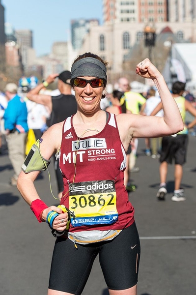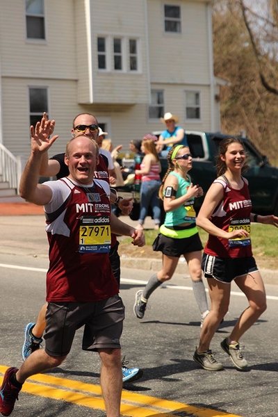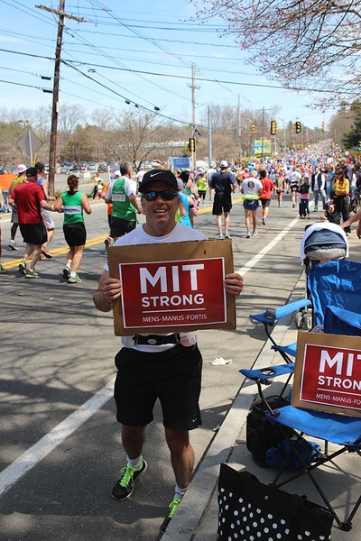 “It really was an honor,” Galts says, of the opportunity to represent MIT at the marathon. “There were so many people screaming ‘MIT’ and holding MIT Strong signs."