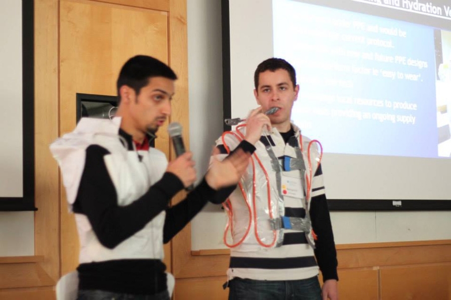At the end of the hackathon, two teams were given prizes for their pitches. One prize went to the team that developed an idea for a portable containment unit that could quickly be set up at field sites in rural areas as the disease spreads. The other went to a team that developed a concept for a low-cost and sterilizeable wristband device that would measure a patient’s temperature and alert a doctor if a fever was developing.