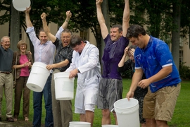 Ice bucket challenges are all the rage, raising awareness about ALS and the efforts to treat and cure the devastating neurodegenerative disease. On campus, President L. Rafael Reif and the mechanical engineering faculty recently took the chilly dunks — with a decidedly MIT turn. The challenges were dedicated to Karolina Fraczkowska ’01 and to the son of Professor of Mechanical Engineering John Heywood SM ’62, PhD ’65 — Stephen Heywood, who died of ALS in 2006, and whose family has created an innovative model for ALS research.