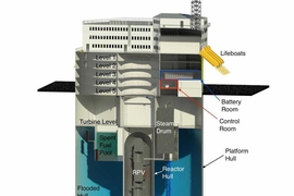 The researchers' vision for an Offshore Floating Nuclear Plant (OFNP, visible in the slideshow above) includes a main structure about 45 meters in diameter that will house a plant generating 300 megawatts of electricity. An alternative design for a 1,100-MW plant calls for a structure about 75 meters in diameter. In both cases, the structures include living quarters and helipads for transporting personnel — similar to offshore oil drilling platforms.