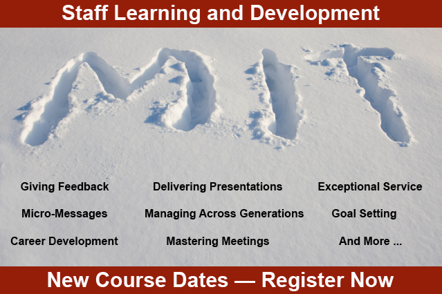Take some time this winter for your own growth and development. See the MIT Learning Center (Career, Development and Transitions, and Communication and Leadership categories) and for all HR course offerings and to register.