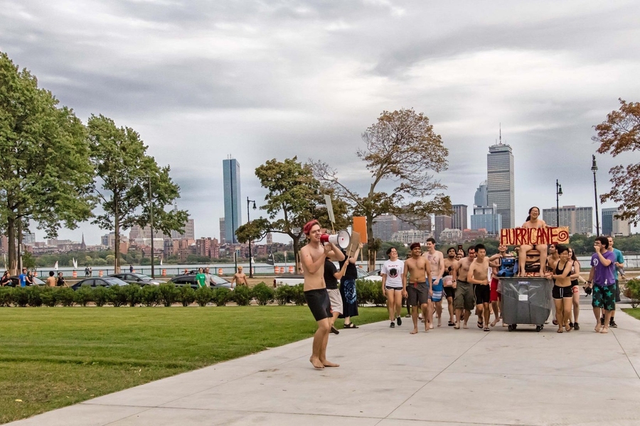 While almost every dorm participates in the war, Shackleton and Techagumthorn say the biggest showing each year comes from East Campus, Next House, and Simmons. “But East Campus always wins,” Shackleton laughs. With serious equipment like water hoses, it’s no surprise that the war usually doesn’t last more than 10 minutes before being called — but it does include some great pageantry. “We usually give a dramatic speech to assemble to troops at the dorm,” Shackleton says. Once all dorms arrive at Killian Court, REX chairs from east and west campus meet in the middle of the court, shake hands, and announce a start to the war. Despite the intensity, the water war comes with some battlefield reunions. “You might see people you haven’t seen all summer. You say, ‘Hi,’ and throw a water balloon at them,” Techagumthorn says.