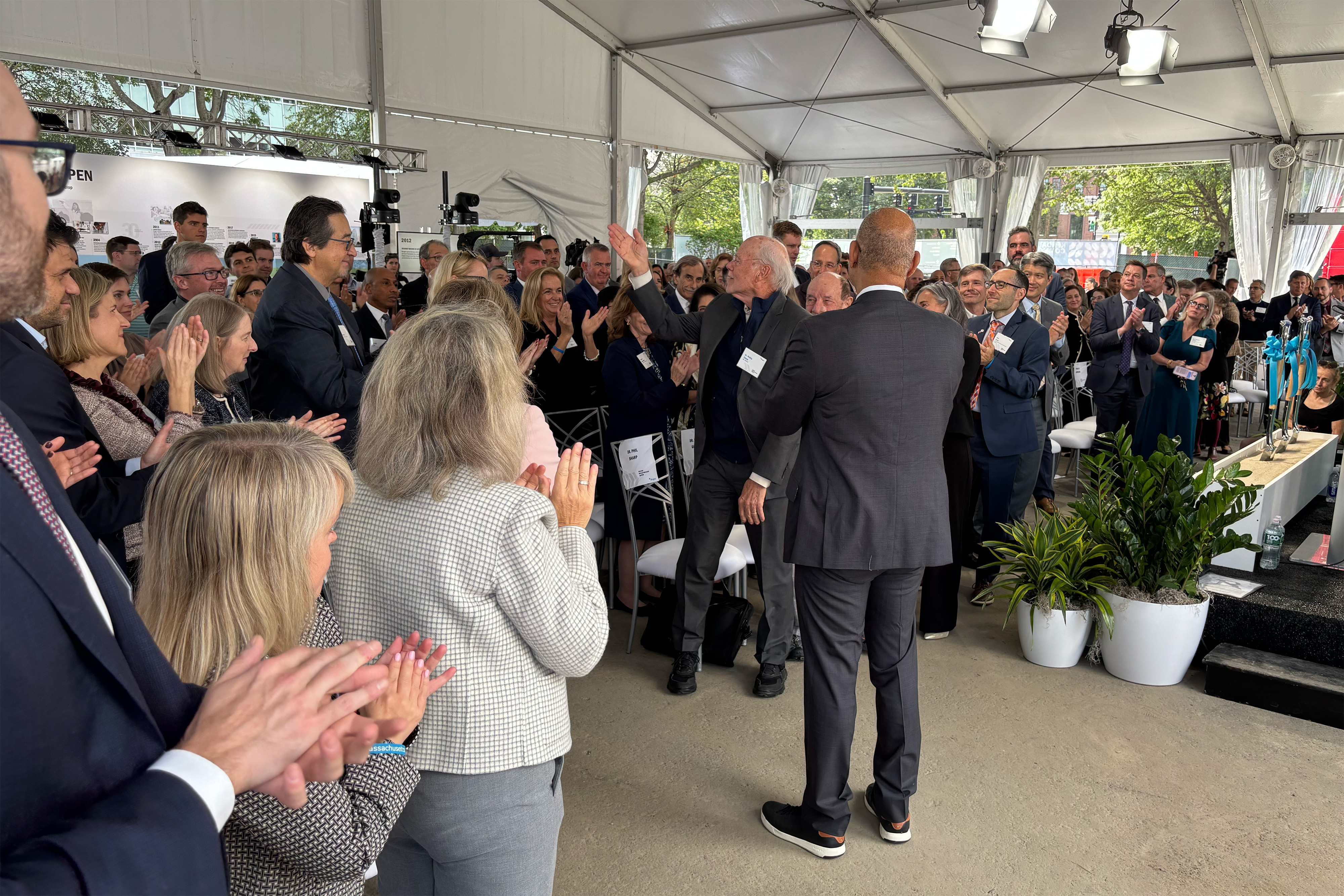 In marking the start of construction, Massachusetts Governor Maura Healey addressed the enthusiastic crowd, saying, “Massachusetts science saves lives — saves lives here, saves lives around the world. We celebrate that in Biogen today, we celebrate that in Kendall Common, and we celebrate that in this incredible ecosystem that extends all across our great state. Today, Biogen is not just building a new facility, they are building the future of medicine and innovation.”