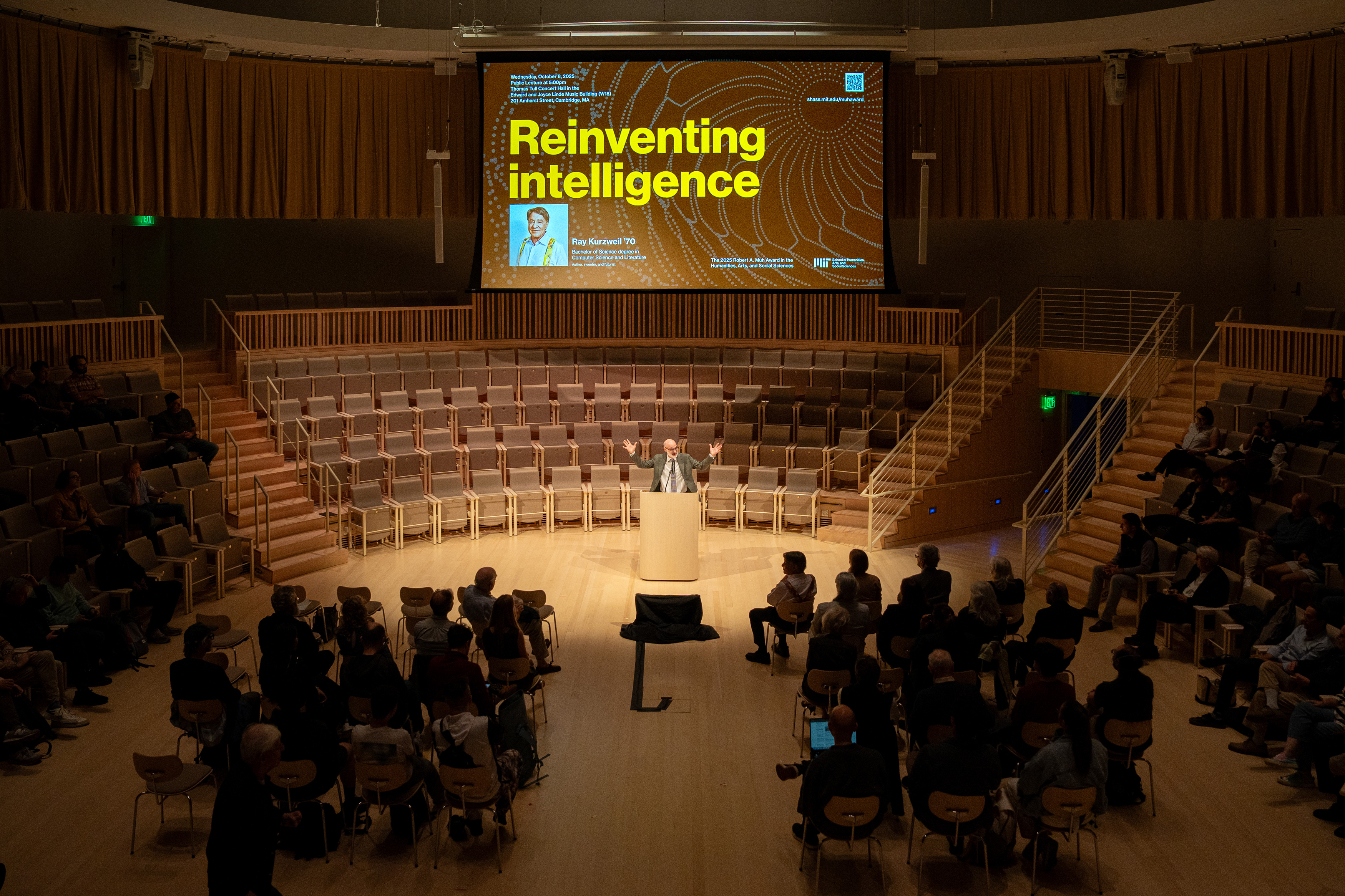 Kurzweil delivered his lecture, titled “Reinventing Intelligence,” in the Thomas Tull Concert Hall of the Edward and Joyce Linde Music Building, which opened earlier in 2025 on the MIT campus.