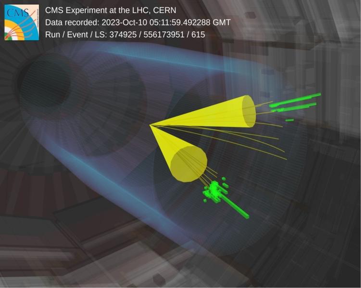 With each run, the Large Hadron Collider fires off needle-thin beams of particles in opposite directions around a 27-kilometer-long underground ring. When the beams cross paths, particles can collide. If the collisions happen to take place in a region of the ring where the CMS detector is set up, the detector can record the collisions, and scientists can then analyze the aftermath to reconstruct the fragments that make up the original particles.