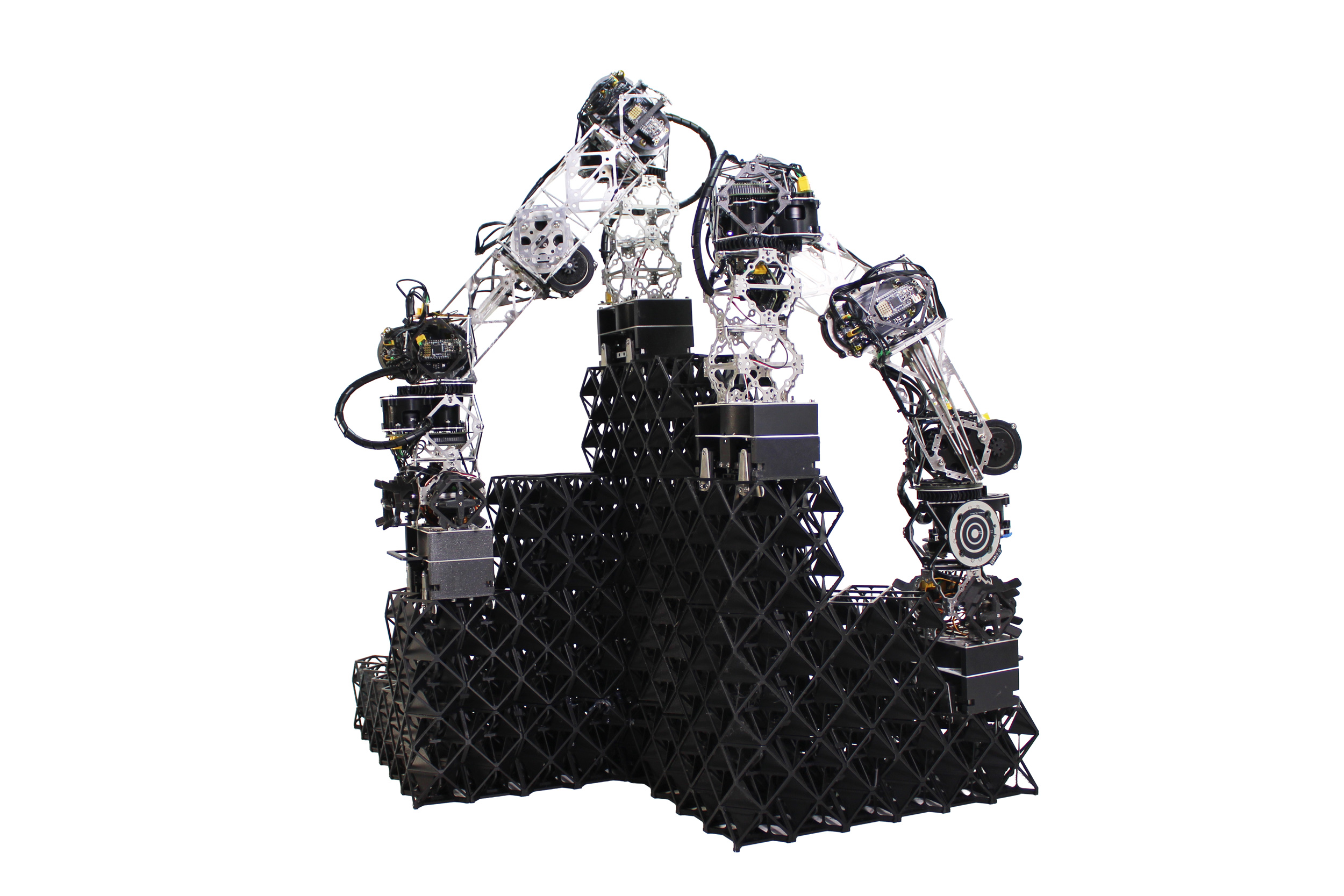 Based on those evaluations, they developed a set of three voxels using a new geometry that could be more easily assembled robotically into a larger structure. The new design, based on a high-strength and high-stiffness octet lattice, mechanically self-aligns into rigid structures.
